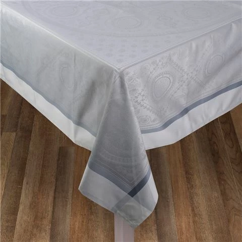 Add a courtly French feel to your dining table with the regal emblems on the Imperatrice Hermine tablecloth and napery from Garnier Thiebaut. With its delicate motifs on a neutral palette, it will fit into most dining settings.