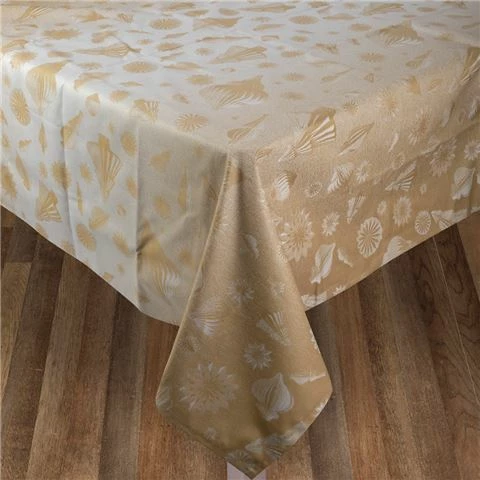 Inspired by the glistening sands of an idyllic beach, Garnier Thiebaut’s Mille Merry Degrade Or Tablecloth is strewn with the treasures from the sea. all laid out on a golden palette. It’s the perfect resort tablecloth or a way of bringing the romance of the sea to your home .