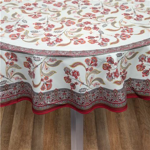 L’Ensoleillade’s Valdrôme tablecloth collections are made from 100% cotton tinted threads and treated with thin acrylic coating. The surface of the cloth is covered with a thin layer which durably protects, slightly thickens the fabric which consequently become more resistant.this protective treatment makes the table cloths hydrophobic.